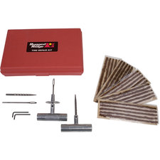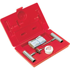 all right with that screw removed we can move on to beginning our repair the first thing we need to do is to go ahead and grab the reaming tool so that we can clean out that puncture before we can install the patch now anytime I'm working with sharp objects especially pulling something out of a tire like that it's always where a good pair of heavy duty gloves can come in handy to keep your hands protected go ahead and grab the reamer also grab the lubricant if your kit includes some just put a little bit on the tip of that tool it's going to make it much easier to insert that reamer down through the tire helping to separate the cords of the tire without damaging them while you're cleaning out that puncture