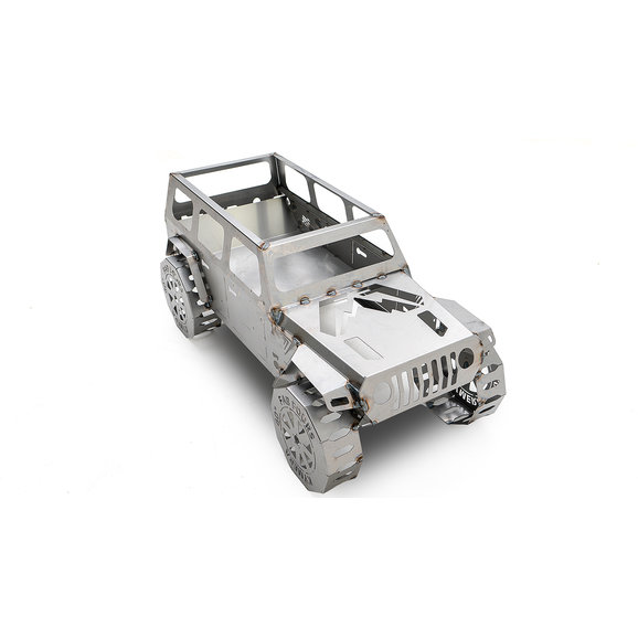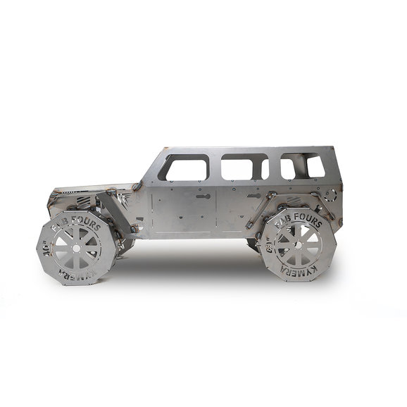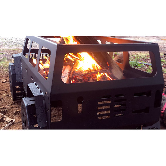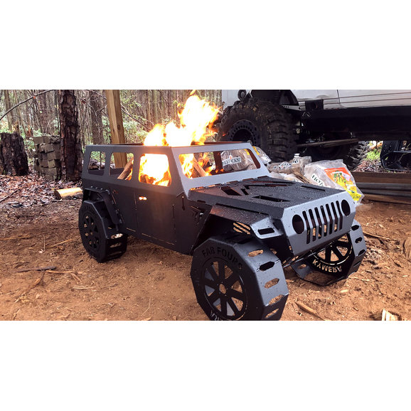 This is the product you have been waiting for! Impress your Jeep friends, family, and neighbors with this Fab Fours Jeep Fire Pit in Bare Steel. Perfect for camping or just relaxing on a cool evening in your back yard. This true to scale fire pit with 40" simulated tires is made from 16-gauge bare U.S. steel. Holds enough wood to burn for hours and crafted with strategic openings for ultimate airflow. Add to that the integrated bottle opener and you have all you need to sit around the fire pit and enjoy. Measures 48x23x22" & weighs 48 lbs. Made in the USA!