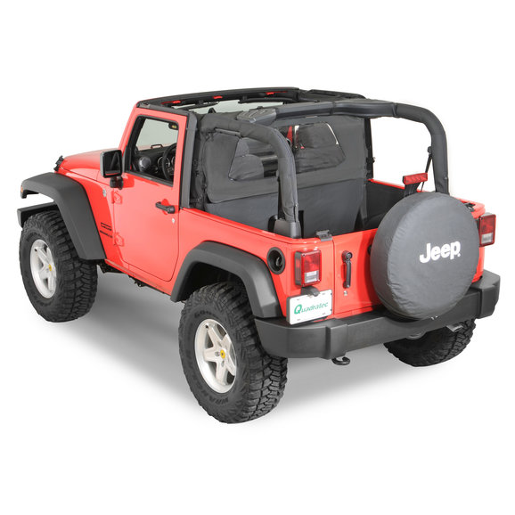 Our NEW QuadraTop Clearview Windstopper deflects air up and over the passenger area while reducing drafts, noise and moisture. Constructed of durable 23 oz. fabric and features crystal clear 20 mil vinyl rear window allows for excellent rear visibility. All 2 door models feature a unique between the seats cut-out door for easy access to the rear of your Jeep®. Easily attaches to the factory sport bar using heavy duty nylon straps and buckles. All have a lower external skirt to easily attach to your QuadraTop Tonno cover.