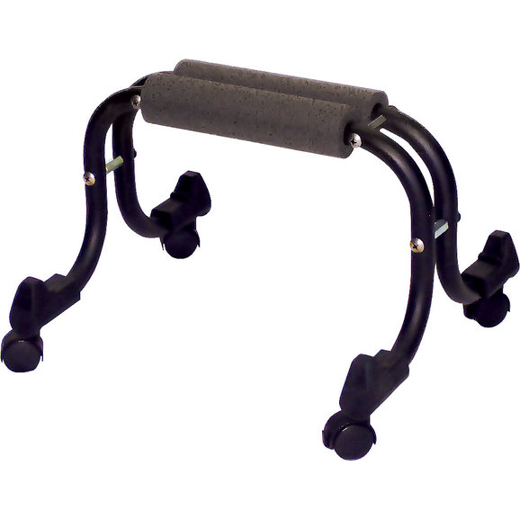 Specifically designed to safely store one pair of Wrangler or CJ7 steel doors in their upright position. Works with both full and half steel doors and takes up minimal floor space. Swivel caster wheels allow for easy movement in any direction with one hand. Doors rest on molded rubber cushions and lean against soft foam padded support bars. Includes strap to secure both doors together. The all steel tube frame features a durable black powder coat finish. Made in USA.