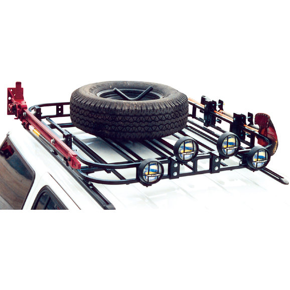 Manufactured from heavy duty 1/4" steel plate and features a chain locking system and black powder coating for durability. It mounts directly to our tubular steel flooring kit and is fully adjustable for any size wheel and tire combination. Secures directly to the Garvin Expedition Rack.