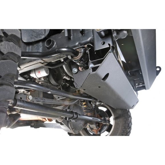 Custom designed to protect the steering components on all Jeep Wrangler JK's, this overbuilt skid plate is a must for those off road adventures. Constructed of durable powder coat painted steel with a rust resistant E-Coating, this Skid plate is designed to take whatever the trail throws at you! Designed to fit with all Rugged Ridge front bumpers (looks amazing with the XHD Bumper system!) or all factory front bumpers, this skid plate provides protection for all front steering components including the very expensive electric sway bar disconnect system found on Rubicon models. Easy to install frame mount design incorporates special gussets and welded brackets to ensure long life and great off road performance.