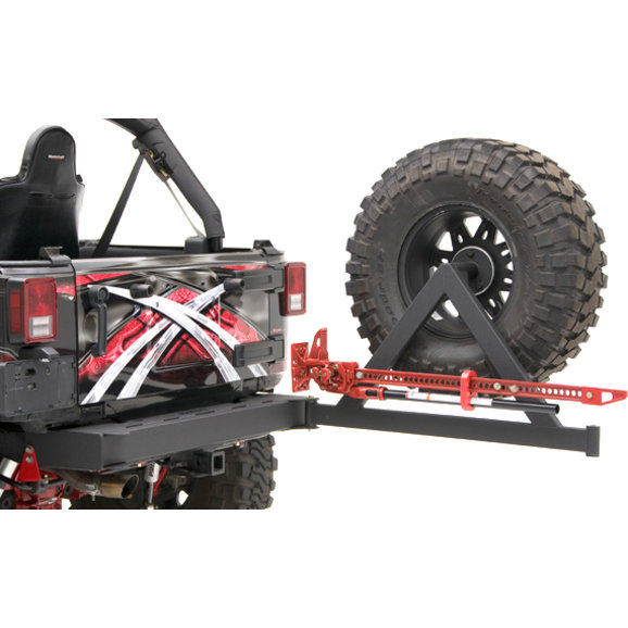 This heavy duty rear bumper and tire swing combo is the perfect compliment to the front Rancho Bumper! The compact and unique design provides maximum off road clearance while being able to hold up to a 37 tall spare tire. Also has provisions for a Hi-Lift Jack and has plenty of clearance for the factory 2 receiver hitch! Constructed from 1/4 steel and comes in a durable black powder coated winkle finish.