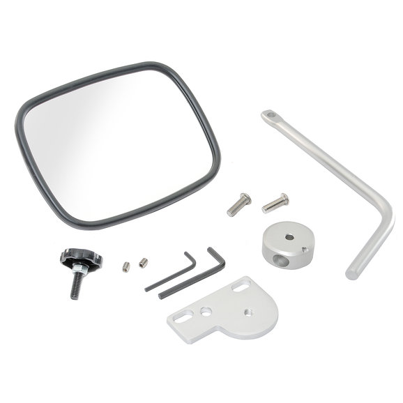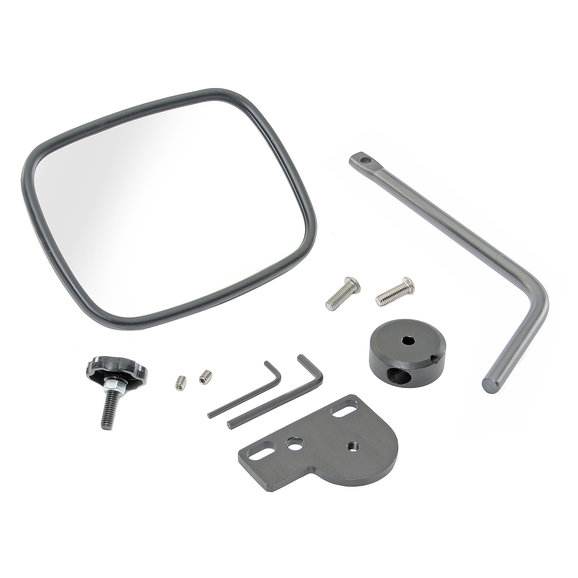The Quick Mirror II, a quick mount or release mirror. This beautifully made device installs on the side of the windshield frame of either Jeep CJ, Wrangler YJ of TJ models using the existing mounting holes. Quick Mirror II removes with the twist of a knob leaving only a small mounting bracket when the doors are returned. Quick Mirror II is hand-machined and finished from stainless and aircraft aluminum for ultimate corrosion protection. Quick Mirror II's arm bend can rotate to work at any windshield position. This product is available in Premium Black Finish. This mirror is designed for users that want an aftermarket soft door or half door because it doesn't use the door hinge as a mount. For a hinge mounted mirror, see Quick Mirror I