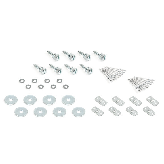 This kit is designed to help you remove your Jeep TJ top quickly and easily with six thumb screws. The specially designed receptacle hardware allows you to release or replace your top without tools. The nut portion, called a receptacle, installs permanently on your vehicle body and saves removing panels or fishing for nuts that dropped. The installation requires some drilling. The captive screws are 1¼ turn type and you can take them out or replace them with just your fingers.