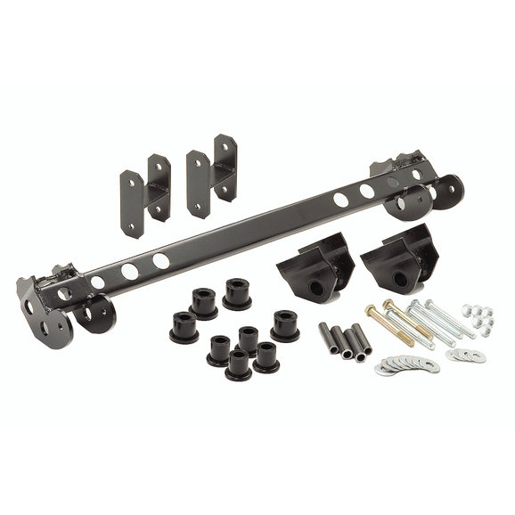 Have you ever experienced an unstable, wandering sensation prevalent in CJ-series Jeeps and YJ Wranglers? Our SR-180 Shackle Reverse System is designed to eliminate poor handling characteristics, and help create a safer vehicle for all driving conditions. Simply moving the front leaf spring shackle to the rear of the same spring creates an amazing improvement in driveability. The SR-180 System comes complete with urethane bushings for your front leaf springs and frame brackets. Bushings further enhance the handling and ride quality of your Jeep. All brackets are manufactured from HRPO steel, for increased strength, and jig-welded for ease of installation. Note: On several applications, some wielding is required.