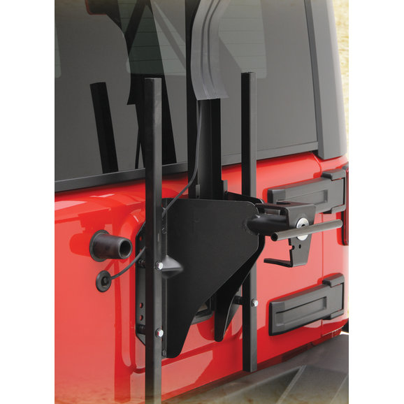The Smittybilt Oversize Tire Mount is the most economical way to mount an oversized tire onto your 2007-2018 JK Wrangler. Attaches to the factory tailgate using the existing holes and requires no drilling or modifications. Completely adjustable and designed to mount up to a 37" tire or up to 195 lbs. Engineered to integrated with existing tailgate and works as one solid unit. Carrier and tailgate open and close as a single unit. Adjustable arm eliminates tailgate sag. Comes in a signature series matte black textured finish.