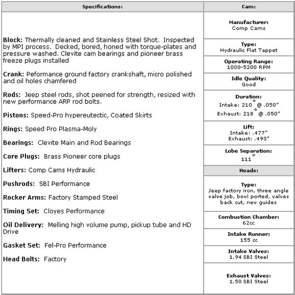 Our Jeep inline six engines will bring new life to your on/offroad experience. These engines are direct bolt ins and we build them per the year of your Jeep so the installs are very straight forward.
