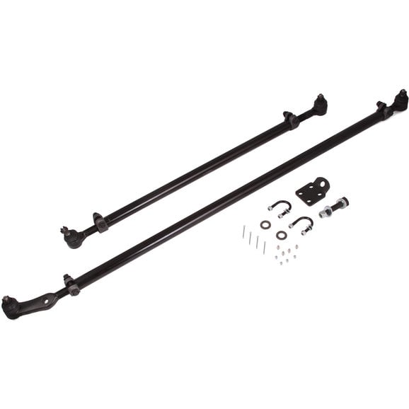 Beef up your ride with Rugged Ridge steering components. This is a bolt-on solution for preventing bent tie rods from wheeling with larger tires. The tubes are 1-1/4 inch ID steel that is cold rolled, pierced, and drawn through dies to produce a 1/4 in. wall thickness. This is true DOM tubing with NO seams OR welds to fail. Heavy duty 7/8 inch rod ends feature standard tapered ends to fit stock knuckle applications. You get one ton strength without any modifications to your steering knuckles. Will not work with Right Hand Drive vehicles. Will not work with Factory Rubicon Wheels.