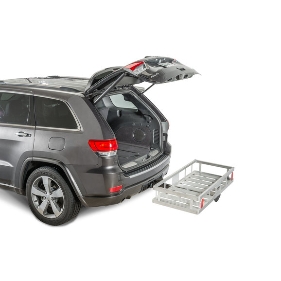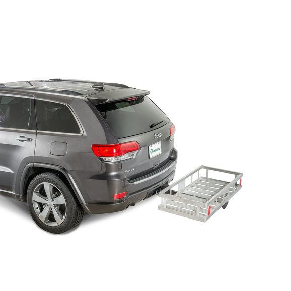 As much as we love our Jeeps, the limited rear cargo space is sometimes inadequate. The Quadratec Lightweight Receiver Hitch Cargo Rack is an excellent solution. The simple convenience of adding additional payload when you need it makes these handy units indispensable. Weighing in at a mere 28 pounds this rack is lightweight yet rugged and fits into any 2" receiver hitch tube to provide instant storage for camping gear, luggage, hunting trophies, gardening materials, coolers and perhaps this year's Christmas tree. Quadratec's receiver hitch cargo racks make easy hauling for nasty, dirty stuff like this week's trash, greasy car parts, sacks of concrete and bags of mulch. All without making a mess of the inside of your vehicle. Our cargo racks are designed for a Class II receiver hitch and are rated to hold up to 300lbs cargo capacity but may be limited by a lesser vehicle or hitch capacity rating. These are a great value for those needing a basic cargo rack that is optimized for Jeep applications. The Aluminum basket measures 49.5"x22.5" floor with 8" tall sides.