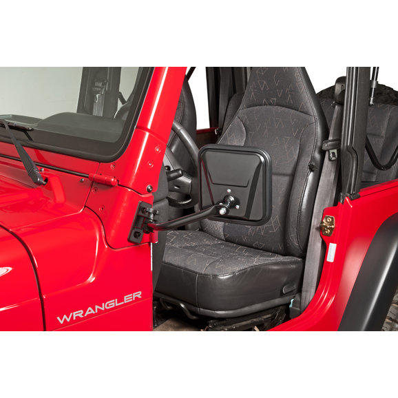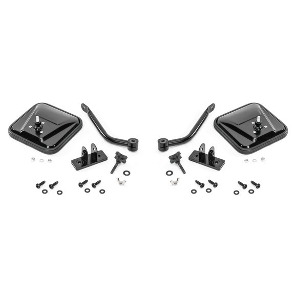 Quadratec's Quick Release Mirror Movers provide driver and passenger side mirrors that attach to the "A" pillar using existing bolt holes at the windshield post. Installation is quick and easy and there's no drilling required. Once installed, the quick release screw knobs allow the mirror heads and arms to be removed without any tools. The small mirror mount brackets stay attached to the "A" pillar while the doors are back on and the factory mirrors are being utilized. These kits are an excellent choice when aftermarket tubular doors and cloth door assemblies are in place. Quick Release Mirror Movers feature steel construction with durable black powder coat finish and are available with square or round mirror heads. Includes Quadratec's billet aluminum mirror bushings that hold mirror arms firmly in place without slipping. Sold in pairs.