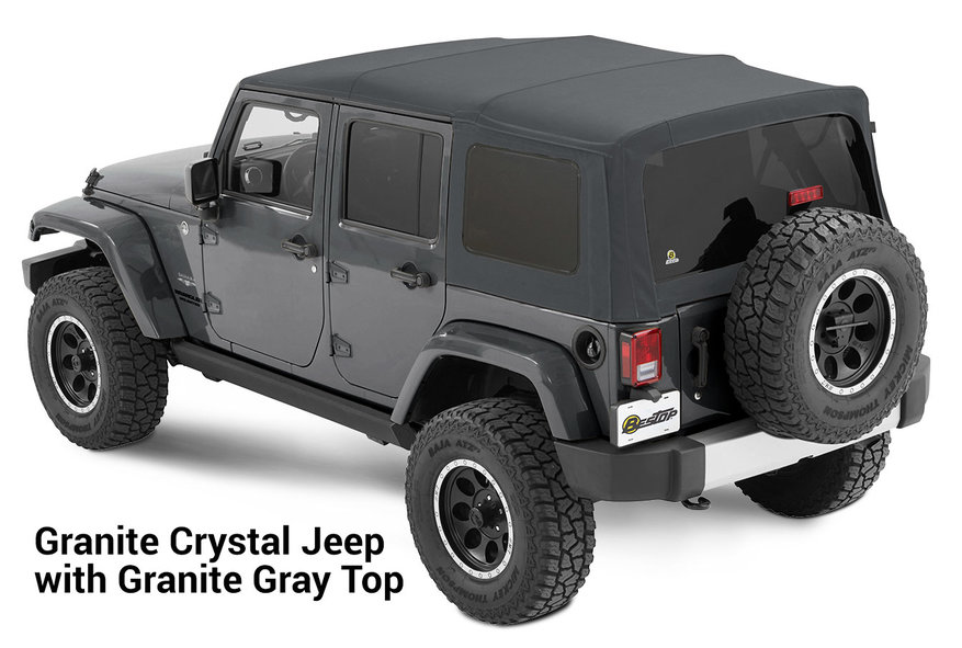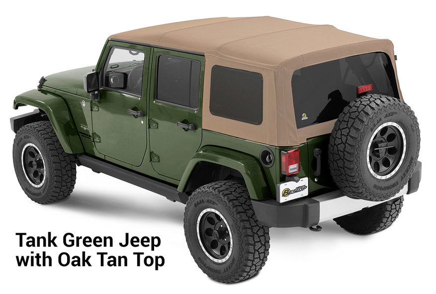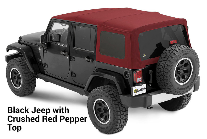 The guys at Bestop always push the limits of soft tops. They did it with the Trektop NX Glide and they did it again with the Premium Color Soft Tops. It's important to note Bestop did not design their new Premium Color Soft Tops to match the body color of your Jeep. It's completely by chance that Pebble Beige is almost identical to Mojave Sand. Instead, they designed a collection that would complement your Jeep's body color. Thanks to this, you now have the choice of putting a tan top on a black Jeep, or a red top on a white Jeep. The possibilities are only limited by your imagination. These Premium Color Tops have truly started a new era and there is no reason you should limit yourself to just a standard black top any longer. That is, unless you really like that black top look on your Jeep.