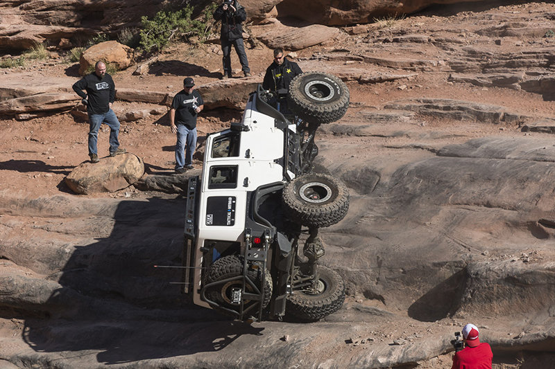 Another is the infamous Rocker Knocker, which is a double ledge requiring perfect execution. Even those who succeed in overcoming Rocker are usually pushed to the brink of tipping over and the obstacle unfortunately lived up to its Jeep-eating rep Monday, breaking one vehicle’s axle while damaging several others.
