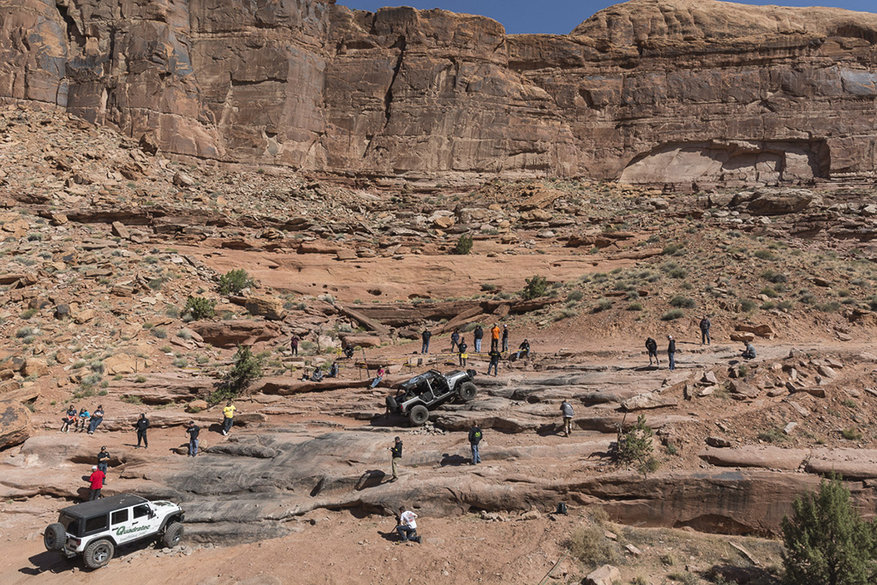 Another was a slightly challenging incline stretch of slickrock, broken up by a somewhat deep channel that forced drivers to put their passenger tire high on the rock to overcome, while walking up.