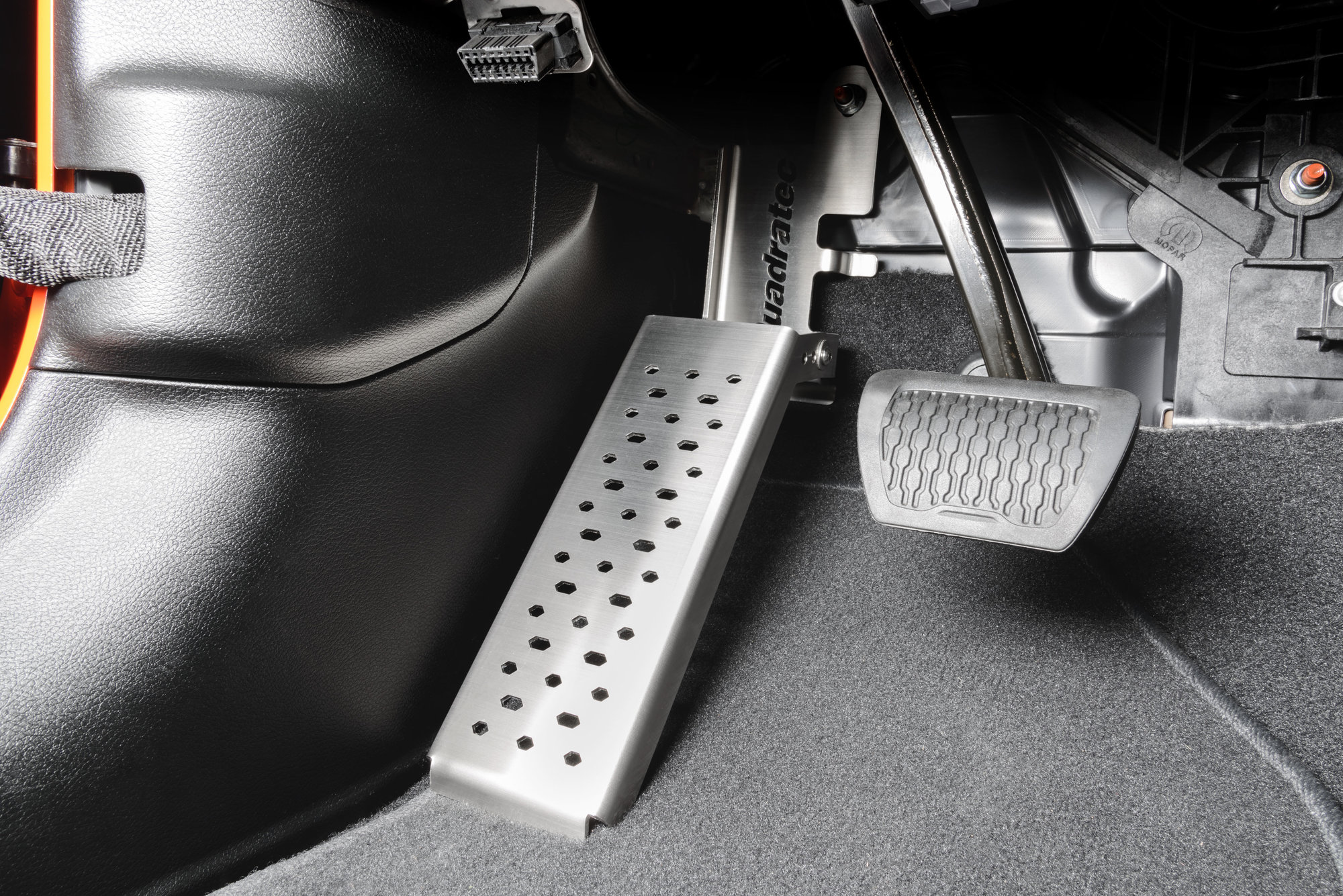 It has a generous surface area and is engineered with 304 stainless steel so it won’t rust or degrade over time. Additionally, it is simple to install to a factory-provided mounting point and doesn’t require any drilling or other modifications. Plus, it can hinge up to allow fitment of most floor liners to the footwell area.