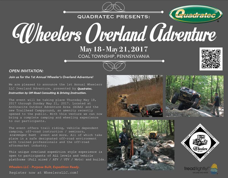 This experience, the first annual Wheelers Overland Adventure, runs from May 18-21 at Anthracite Outdoor Adventure Area in Coal Township, PA, and is a complete wheeling, camping, training and overlanding event designed for enthusiasts of all skill levels.