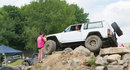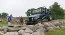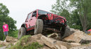 While the parade may draw the most attention, the other popular spot is the the Jeep Playground, sponsored in part by Quadratec, where drivers could choose one of three courses depending on their Jeep build. The first is a small trail with uphill and downhill mounds, as well as high-banked turns for those with stock Jeeps or are new to off-roading. Another is a more sophisticated track with steeper approach angles, ledges and deeper drops designed to be more of a test. The last is a long rock pile that tests a driver's patience, as well as their ability to follow spotter instructions. The rocks are spread out to force maximum tire articulation, while sending the vehicle off-camber at times before a sharp ending ascent and descent. Even some of the built-up Jeeps had issues here and there with the run, with tires spinning at times or just not finding the right line at first. However, the experienced spotters from Rausch Creek Off-Road park, led by Quadratec Racing Team's Ron Lind, did an excellent job getting everyone through (sometimes with a helpful winch pull).