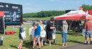 Also popular for those who took time away from the rocks and mud was the Jeep Skills Competition, where participants competed in various games to see who could get the highest score. Those games included passengers knocking a ball down the trail with a broom at slow speed, then trying to brush it up a ramp and into a bucket; a section where tennis balls were thrown at strategically-placed water bottles — the more knocked down, the higher the score; Frisbee and hoop throws to targets; giant dice thrown to a marked area, and a spot where one of the occupants scooped water from one side of a divided metal tray to the other without spilling — all while the Jeep rolled along. Additionally, several trivia questions were asked by volunteers at each game stop that contributed to every Jeep's final score.