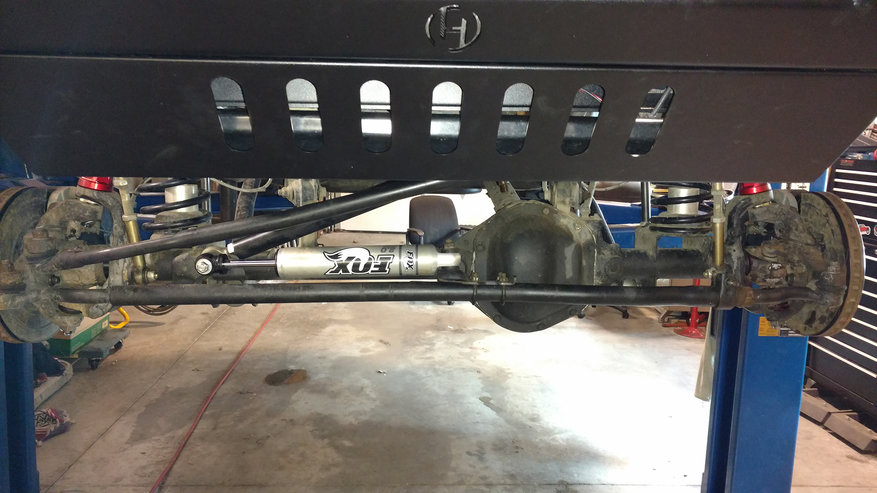 My factory steering stabilizer also decided to give up the ghost (and all its fluid) when it was removed for the ball joint upgrades, so a Fox IFP Steering Stabilizer was installed. Yes, it’s upside down. Don’t worry, that’s easy to fix.