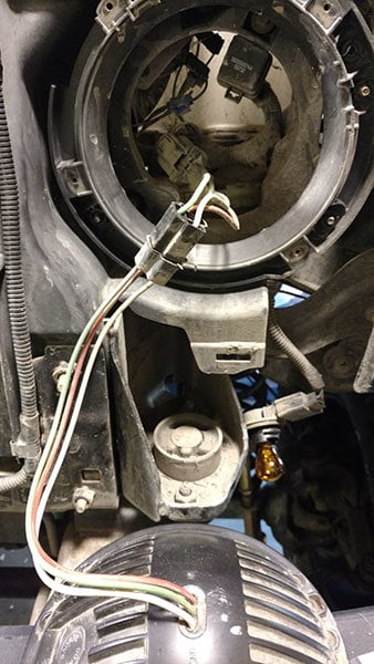 These lights have seen better days, and the lenses were always hazy. While that certainly hampered my light output, the halogen bulbs were never going to be capable of what I wanted anyway. The weatherpack style connector pulls right out of the back of my 2008-style light, while 2011+ models have a slightly different plug.