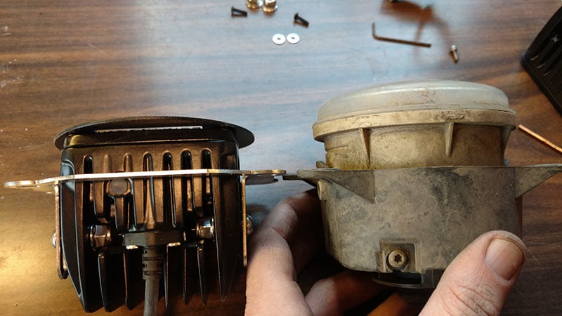 Because I want to fit a “square peg in a round hole” by mounting them in the bumper, one more item is needed to replace the factory fog lights.