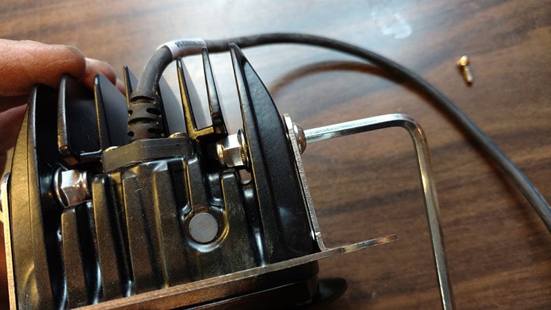 Next, the mounting brackets are added to the entire assembly with another Allen bolt and Nylock nut. One of the advantages to this setup is the ability to set the depth of light once installed, as well as allowing you a few degrees of up-and-down movement to aim the lights.