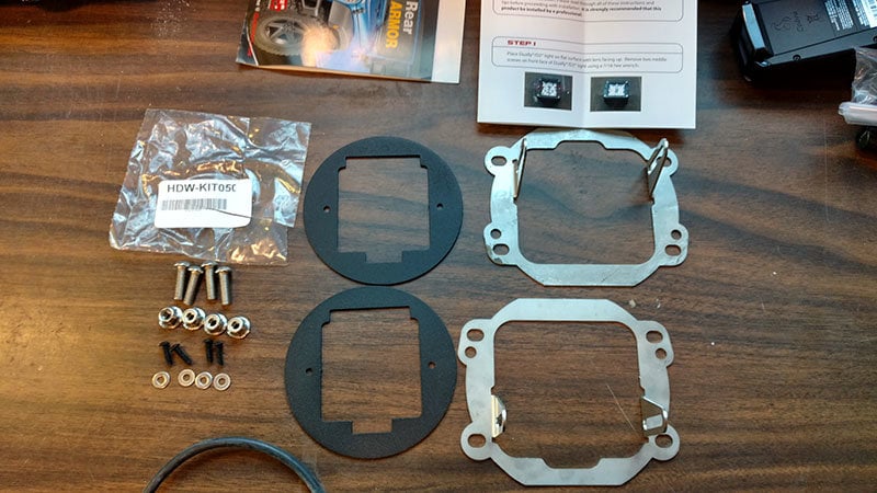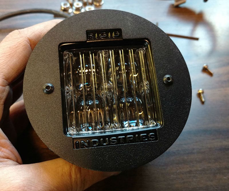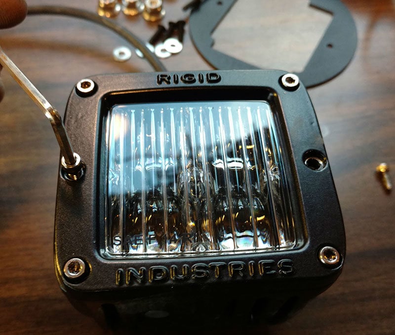 After a few minutes, I had the D-Series fogs mounted to the black textured front plates using a small SAE Allen wrench (not sure of the size, as the set wasn’t marked). Small washers are included to keep the plate from rubbing against the light’s front bezel, as well as black Allen hardware to replace the two stainless steel bolts from the center of the light.