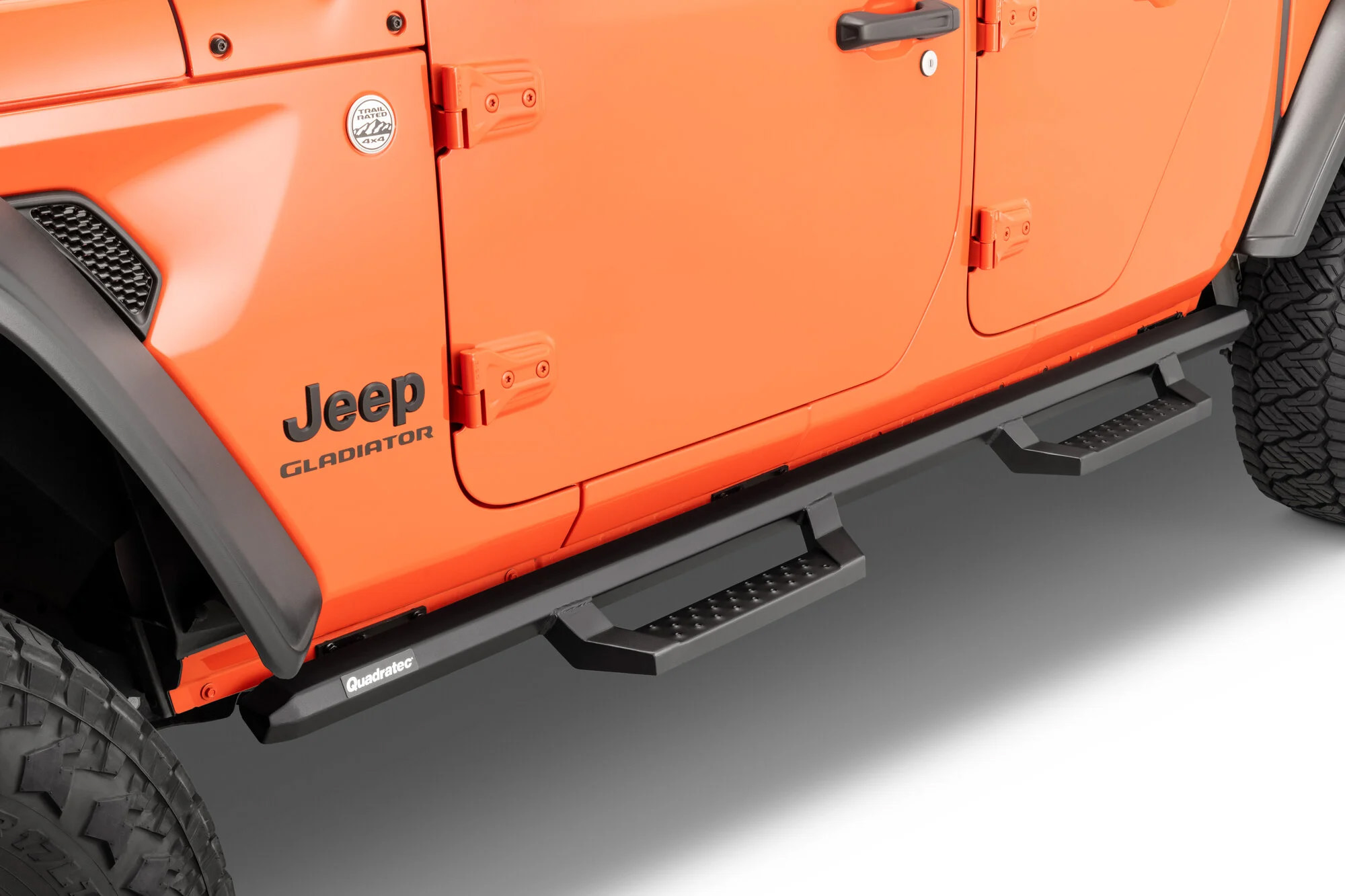 They also make a great upgrade from the plastic factory steps and provide a much stronger standing surface for tasks like installing/removing the soft or hardtop, lifting items onto a roof rack above the hardtop, or cleaning the windshield. The wider full-length tubular step on many of these designs also makes it easier should the vehicle become stuck, and you need to climb across the step to access the winch or safely find the best spot to jump out.