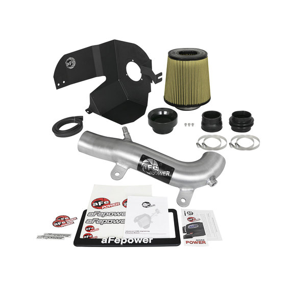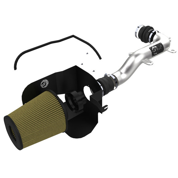 aFe Power has designed the Magnum FORCE Stage 2 Intake System to be a premium upgrade over the stock intake on the Wrangler JL vehicle. The 3" mandrel bent aluminum intake tube comes in your choice of a Brushed Aluminum or powder coated black for longevity, while directing airflow to the throttle body, resulting in gained horsepower and torque. This intake features the 7 1/2" tall Pro-GUARD 7 oiled filter with 5-layers of progressive cotton media with 2-layers of non-woven synthetic media providing 99.7% cumulative efficiency for maximum filtration. The heavy duty 18 gauge steel heat shield is a one piece construction that is designed to block and dissipate any heat that could hinder the performance of the intake. The intake system is specifically designed for the Wrangler JL and mounts to factory locations with no modifications required for the installation. All necessary mounting clamps and hardware are included to get you back on the road quickly.