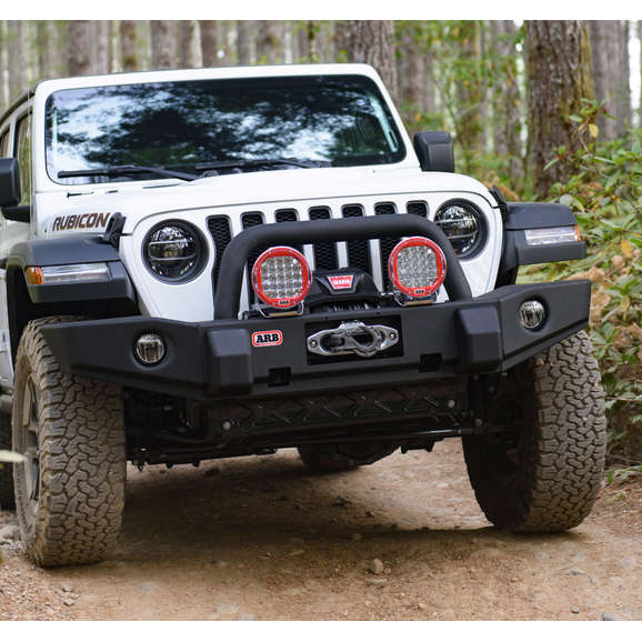 Bull Bar, check. Integrated winch mount, check. Light mounts, check. The ARB Deluxe Classic Front Bumper will check all boxes that you are looking for in a new front bumper for your Wrangler JL or Gladiator JT. The full-width styling of this bumper is rugged yet stylish at the same time. Made from high-strength steel, which is zinc primed and then finished with a black textured powder coating to ensure years of good looks. The winged ends of the bumper are designed to allow up to 37” tires with appropriate lift and wheel backspacing. The built-in winch mount will allow ARB low profile winches up 10,000 lbs. as well as most aftermarket brand low-profile winches. The light holes on the bumper wings will allow the mounting of OEM LED fog lights or halogen lights. The built-in jack mounting points are suitable for the ARB jack (sold separately) or other mechanical jacks. Light mounts are built in that will allow various sizes of auxiliary lighting options.