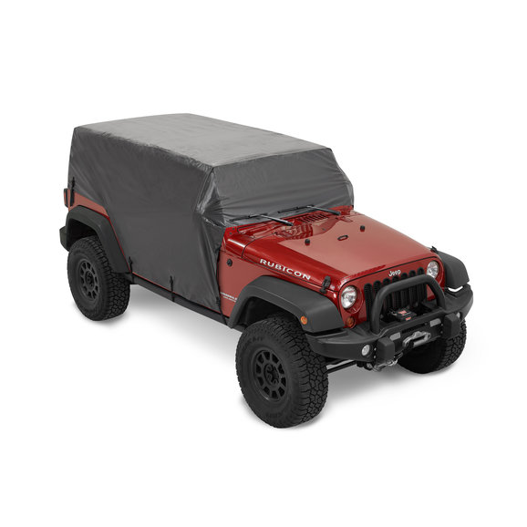 Give your Jeep Wrangler JKU or JLU protection from sudden showers with the All Weather Trail Cover from Bestop. The Trail Cover is designed to cover the exposed cab area when the top is removed. Made from heavy-duty water-resistant fabric, the trail cover also features full door flaps that attach securely to the underside of the Jeep with adjustable straps. The Trail Cover fits over most accessories, but will not fit with the factory top installed. The included stuff sack is perfect for storing the trail cover when not in use.