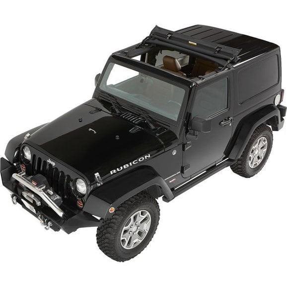 Tired of removing and storing those bulky Freedom Top panels whenever you want fresh air on a nice day? Let Bestop’s new JK Sunrider for Hardtop easily open up your life and bring some sunshine. The JK Sunrider for Hardtop installs quickly, with no drilling, and can be unlatched and folded back whenever you want that ‘open air’ feel – all without having to store anything. The Sunrider for Hardtop is constructed using the standard Black Diamond material or the upgraded Ultra Premium Twill material. Both are waterproof, quiet, and built to last in any type of environment. This top includes all hardware and snugly latches with a waterproof seal just like the original panels. Bestop’s JK Sunrider for Hardtop truly is a ‘soft top’ flair for a hard top vehicle.