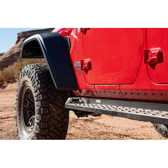 Generous Surface Area: Steps measure 72 inches long (4-Door), 54 inches long (2-Door) and 6.25 inches wide and offer dimpled die tread design stamped into the carbon steel running boards for sure-footed traction in all conditions.
