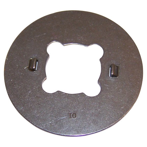 The Crown Automotive Cluster Gear Thrust Washer is a direct replacement for the T90 transmission found in Willy's and early CJ Jeeps.  Located on the countershaft at the bottom of the transmission, this washer contacts the cluster and the tabs seat into the gear and helps to shim the cluster to the proper clearances between  .012" to .018".  The bronze backing is located facing the case, against the outer thrust washer and prevents metal to metal reaction inside the case when pressure is applied.