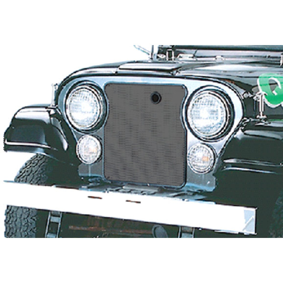 Protect your Jeep CJ's radiator with a Crown Automotive Bug Screen. These perforated screens attach to the grille with tapping screws and are designed to block rocks and debris from from hitting the radiator fins, causing a loss of cooling power. Two options to choose from to match your style : 304 stainless steel and black painted metal. Edges are protected with rubber welting for a clean look and access hole allows for easy use of hood latch.