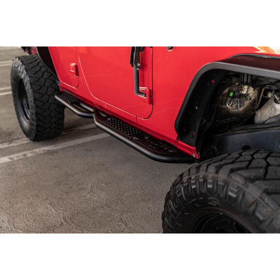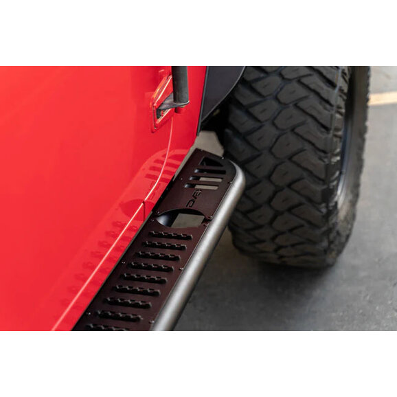 Level up your Jeep Wrangler JK Unlimited 4-Door with the DV8 Offroad OE Plus Side Steps! These bad boys provide a rock-solid stepping surface, letting you conquer any adventure with ease. No more climbing into your Jeep. The OE Plus Steps offer a sturdy platform, perfect for reaching the cabin. Clean lines and a sleek design complement your Wrangler's rugged good looks. The anti-slip surface provides superior traction allows you to step with confidence, even when things get wet and muddy. These side steps are crafted from high-quality steel and finished with a micro-textured black powder coat to shrug off the elements and resist scratches. Unlike some bulky running boards, these steps maintain maximum ground clearance, so you can navigate tricky terrain without getting hung up. The DV8 OE Plus Side Steps are a breeze to install, utilizing existing body mount points on your Wrangler JK Unlimited. In most cases, drilling is minimal or not required at all.