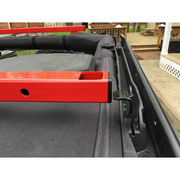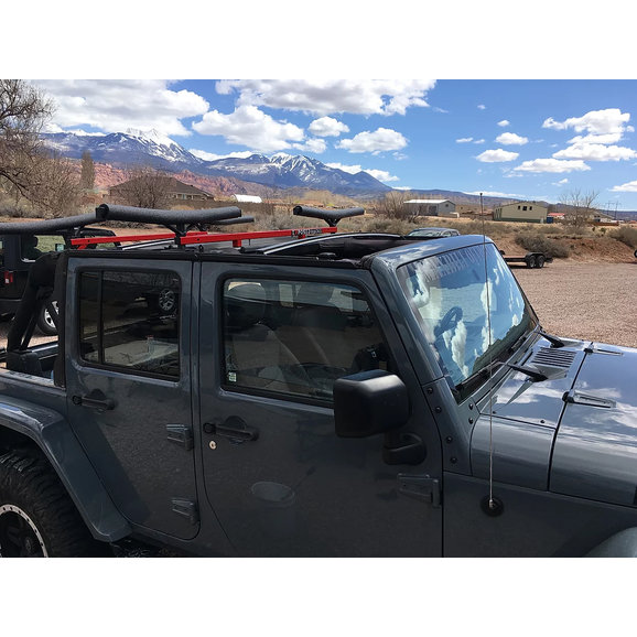 Installs Under Soft Top: This patent pending design is truly innovative. No more bulky framework above your Jeep which reduces fuel mileage and tends to create whistling. Simply mounting to your Jeep roll bar in a few minutes. This awesome rack will allow you to fold down your soft top and haul your canoe, kayak, Lumber, and so much more keeping the weight on the roll bar.