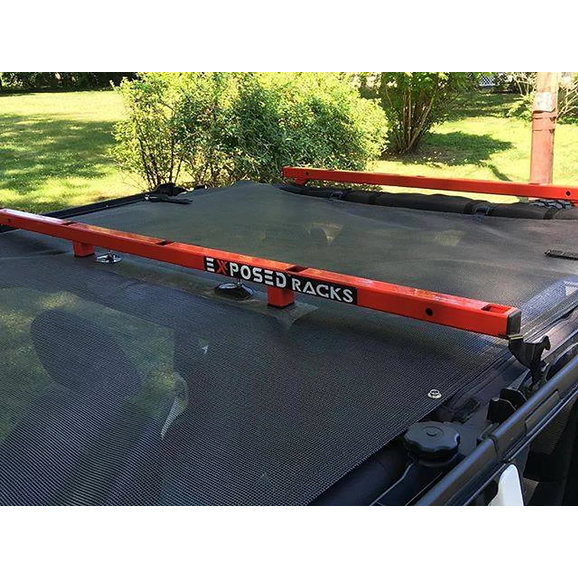 Carry anything! The Exposed Racks Crossbar Roof Rack is a Hand Bolt-On Design for your Jeep Wrangler Unlimited JK 4-Door. This unique rack installs under your soft top and allows you to put your top up and down without any interference. A great solution that will eliminate any additional noise without adding any additional height to your Jeep. Allowing you to still park in the garage or pull into a parking facility with low clearance.