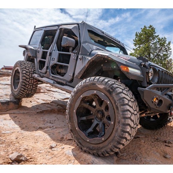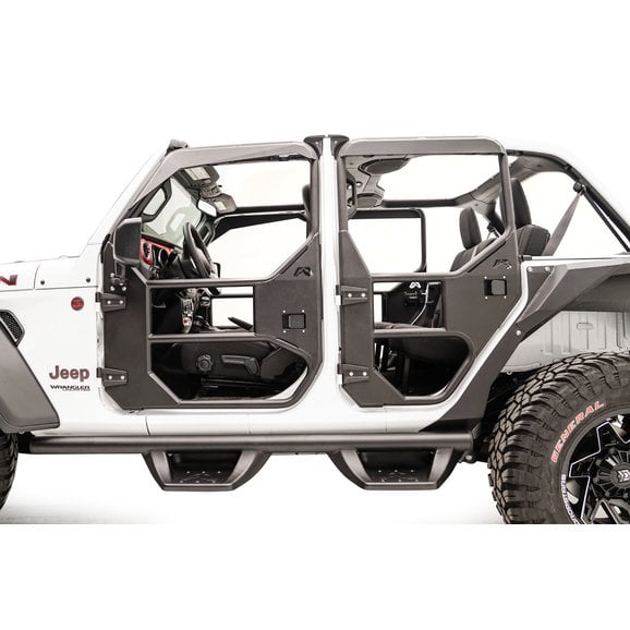 While on the trails or driving down the road nothing feels better then the open air filling up the inside of your Jeep Wrangler JL or Gladiator JT. These Fab Fours Full Tube Doors give you the benefits of tube doors without rattling. As you ride down the trails enjoy better visibility while staying safe and secure in your Jeep. The front doors come with an integrated sun visor while the rear doors come with a factory style limiting strap to help you in and out of your Jeep. Available as front doors, rear doors or front & rear doors together.