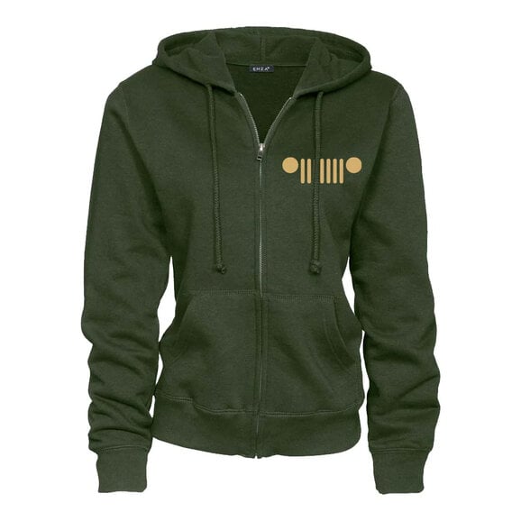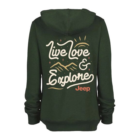 Jeep Merchandise Ladies Jeep Live Love Explore Zip-Hoodie in Olive Green Options