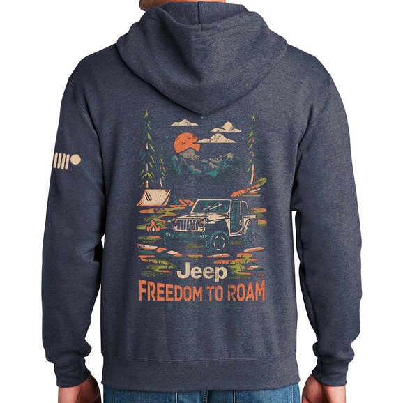 Jeep Merchandise Mens Jeep Freedom To Roam Zip Hoodie Sweatshirt in Heather Navy Blue Options