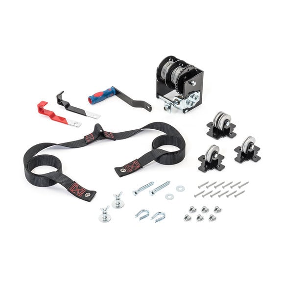 When it is time to get that heavy hardtop off your Jeep, but there is no one around to help, then let Lange Originals Hoist-A-Top give you that helping hand you need. With this perfectly engineered product, you can easily lift off that hardtop and safely keep it stored for as long as you want. No need to really worry about space — it is just that easy as the top stores up and out of the way. Lange's Hoist-A-Top lifts the hardtop from two anchor points on the ceiling and attaches to the top with custom straps and Patented Smart Hooks that keeps the rear lift gate window closed while removing and during its storage. Lifting power is provided by a reliable worm drive hand crank winch and braided steel cables that will keep your hardtop securely suspended until you are ready to put it back on your Jeep. All hardware is included and the Hoist-A-Top installs with simple hand tools.