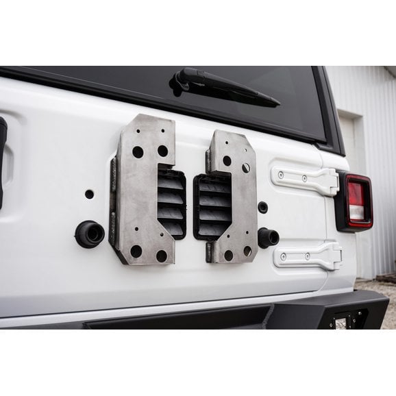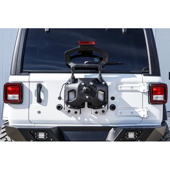 The LoD Offroad Spare Tire Riser for Jeep Wrangler JL allows the use of a 35" Spare which is the recommended tire size for the JL rear door, but the tire riser can accommodate larger tires up to 37" for off road use. Made with a durable black powder coat finish, and an easy bolt-on design!
