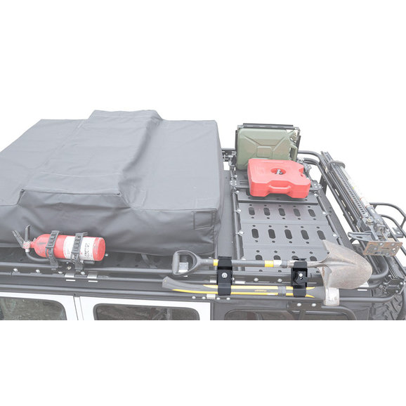 The LoD Offroad Destroyer Roof Rack Trail Tool Mount for Jeep Wrangler JK & JL Unlimited 4-Door is a clamp on mount that will fit all Destroyer Roof Racks and can be added to the LoD Destroyer Base Roof Rack at any time! This Trail Tool Mount allows you to mount off road tools such as an ax and a shovel to your Base Roof Rack securely. This mount is a perfect add-on accessory for your LoD Roof Rack. The Roof Rack Trail Tool Mount is powder coated texture black for a durable long lasting finish. This Roof Rack Trail Tool Mount is sold as a single mount.