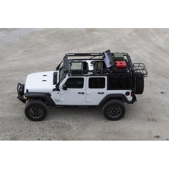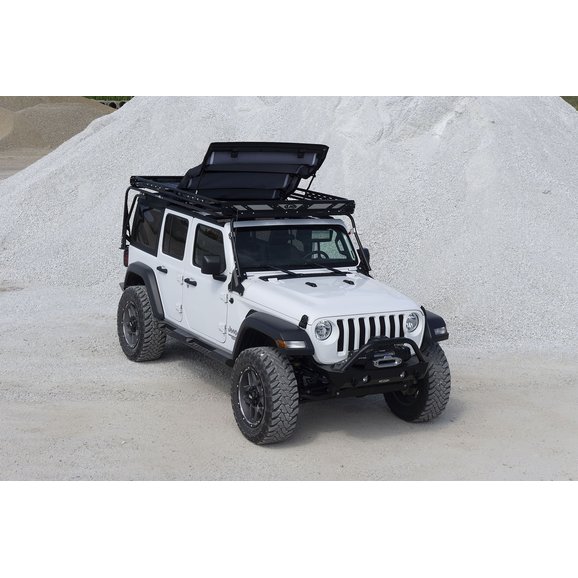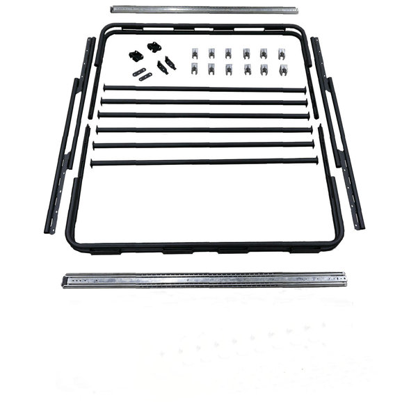 The LoD Destroyer Base Rack Sliding Roof Rack Option for the Jeep Wrangler JK & JL Unlimited 4-Door Base Roof Rack mounts to the Base Rack to allow you to have a basket style rack to secure your gear. This is a bolt-on Rack comes with 6 Crossmembers as standard equipment. This Sliding rack option allows you to have full access to the Soft top for easy up and down operation. This Sliding rack option will also work with the Soft Top in the Sunrider position!!