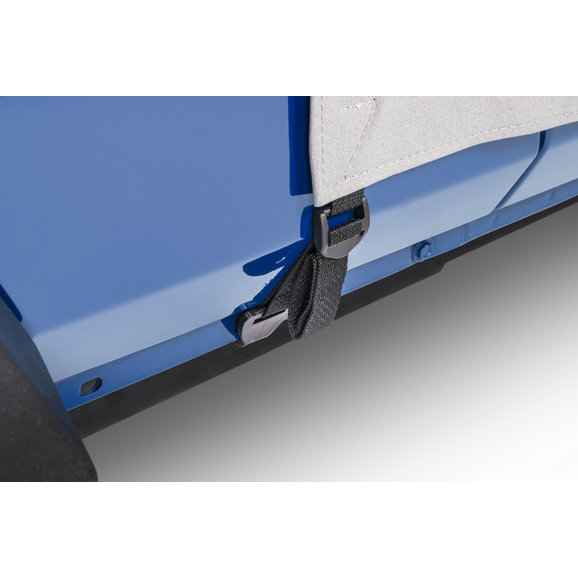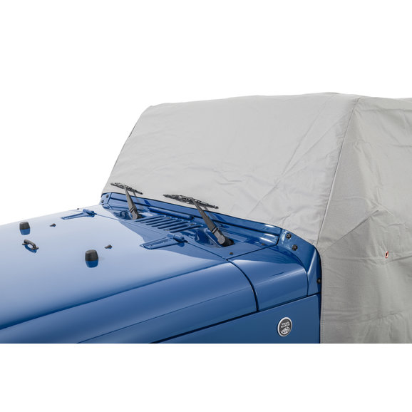 Quick and easy protection from the elements at your fingertips with a MasterTop Cab Cover. These durable covers fit over your vehicle windshield and sport bars when your soft top or hard top is removed providing protection from the sun and those sudden showers. Each cover is constructed of durable Vinyl coated soft top Fabric with a soft non-woven interior for the ultimate in durability and vehicle protection from water, dust, dirt and those harmful UV rays. The fabric itself is waterproof and the seams are located away from pooling water making this cab cover the ultimate weatherproof design, and features a soft non-woven backing that pampers your Jeep's exterior. Each cab cover has a long panel on each side of the cover that protects the door opening from water and debris when the doors are removed and the cover is installed. The light gray color reflects sun and keeps the interior of your Jeep cool. This is a great cover for parking your Jeep during the day while at the office or at school or in the garage during those long winter months. Note: Even though MasterTop only uses high quality waterproof material on their Cab Covers, the seams of the cover are not sealed so there may be some water penetration during heavy downpours.