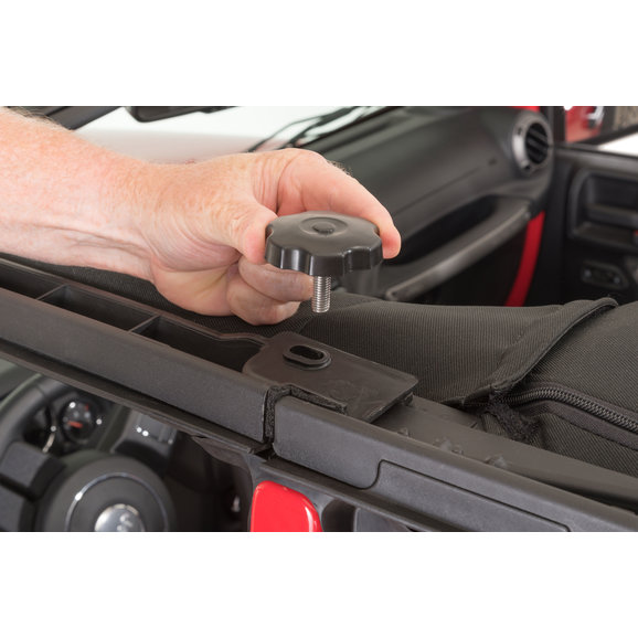 The MasterTop Door Surround Knobs for Jeep Wrangler TJ attach the soft top door surrounds to the factory roll bar. These easy to use replacement knob kits require no tools and the large knob heads are easy to grip by hand, so when it’s time to switch back to your hardtop in the fall and winter, the conversion is quick and simple. MasterTop offers these knobs in different kit sizes to make replacing your knobs easy: Pair pack of long knobs fits 1997-20006 TJ and 2004-2006 LJ Wrangler. For a complete replacement of all your long door surround knobs on TJ and LJ, MasterTop offers a four-pack of long knobs.