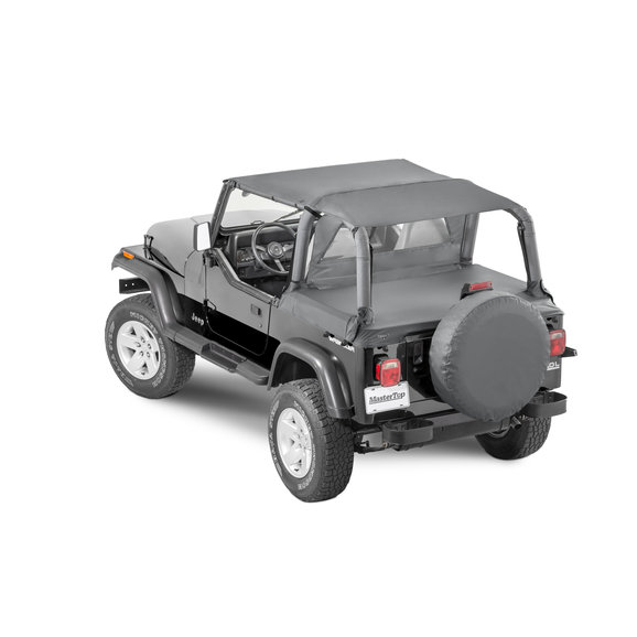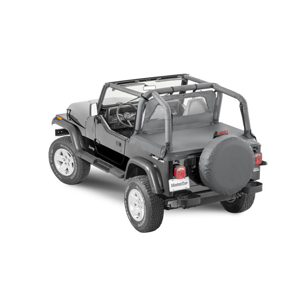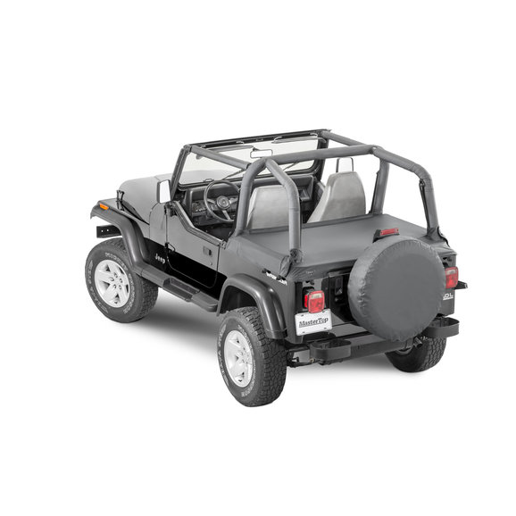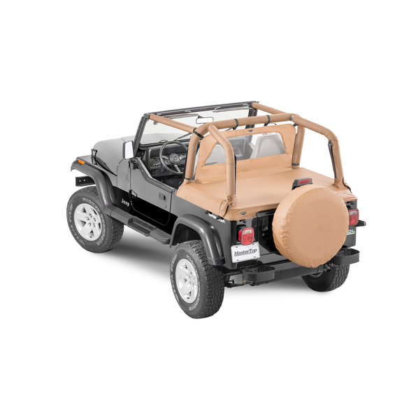 Complete the summer accessory package with a MasterTop Tonneau cover. These custom rear vehicle covers protect your belongings from the weather and keep your valuables out of sight from prying eyes. Constructed of Durable 25oz Soft Top Fabric, each Tonneau is custom fit for your Jeep and features sport bar “sleeves” that secure around the sport bar. Though not completely waterproof, these durable rear vehicle covers attach to your factory belt rail/tailgate bar system and fit over your soft top hardware on 92-95 Wrangler models (For hard top models you will need to purchase body tub belt rails and MasterTop Tonneau part #14504135). Each MasterTop Tonneau incorporates a front-facing zipper attachment for use with a MasterTop Wind Stopper to create the ultimate summer soft goods combo. Available in Black Denim, Spice Denim & premium Black Diamond & Spice Diamond materials. All MasterTop Tonneau covers use up-graded 25 oz Soft Top fabric for the ultimate in durability and great looks. This is a MasterTop exclusive feature found in no other aftermarket summer soft top!
