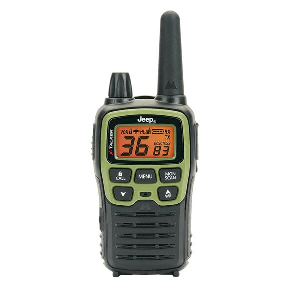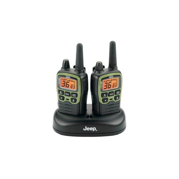 Looking for an easy way to stay connected with your crew on the trails? The Midland Radio Jeep Extreme Dual Pack is the perfect solution. This bundle comes with two walkie talkies with long-lasting battery life, rechargeable battery pack, USB charging cable, two microphone headsets, a Jeep branded carrying case and more. These walkie talkies are water resistant, and provide a working range of 38 miles! With 22 channels, 121 privacy codes, and Weather Alert Radio with Weather Scan, you are sure to stay connected and informed. These should be in everyone's Jeep when off-roading or traveling with others.