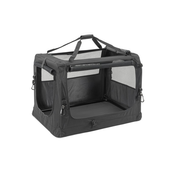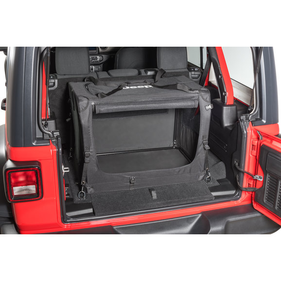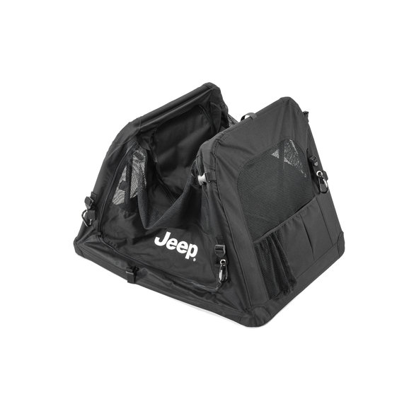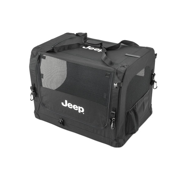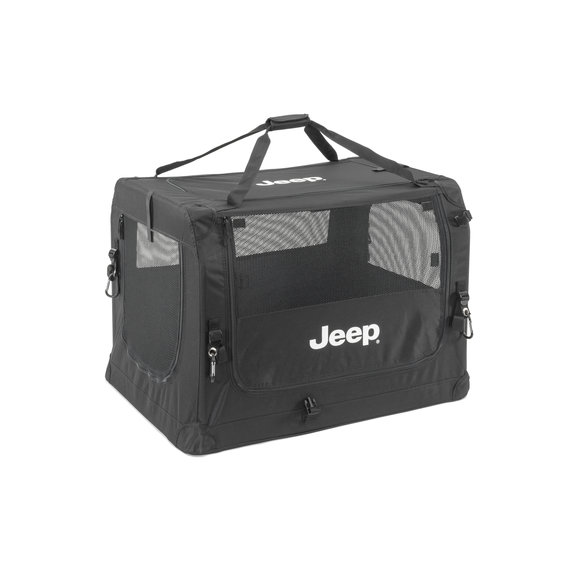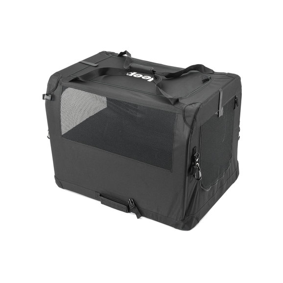 Maximize your travel convenience with the Mopar Pet Kennel. Keeping pets while in the Jeep has never been easier with the Pet Kennel by Mopar! This collapsible kennel is made out of strong nylon mesh material and includes two storage pockets, three door openings, and a carrying handle. The nylon webbing pull straps attach to the cargo area anchors for stability.